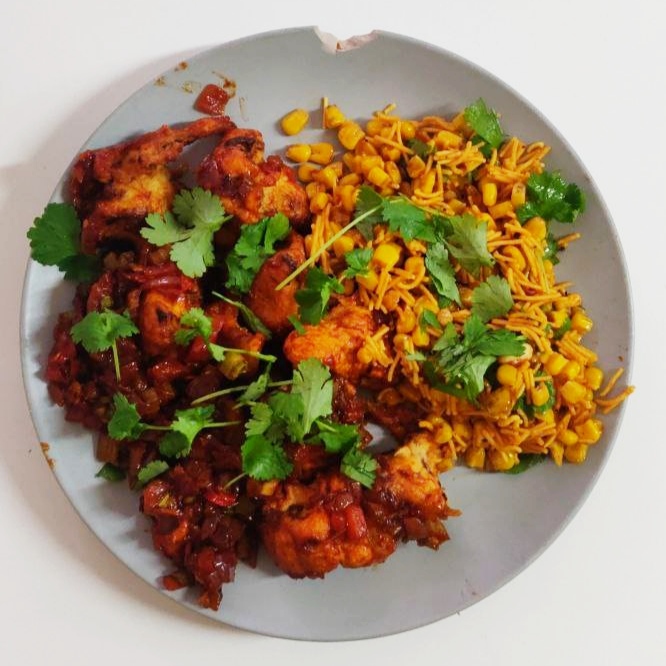 Today, we have a special treat from the creative mind of Harrison Jay Hedge—a delicious recipe for Gobi Manchurian with Sweetcorn Sev.